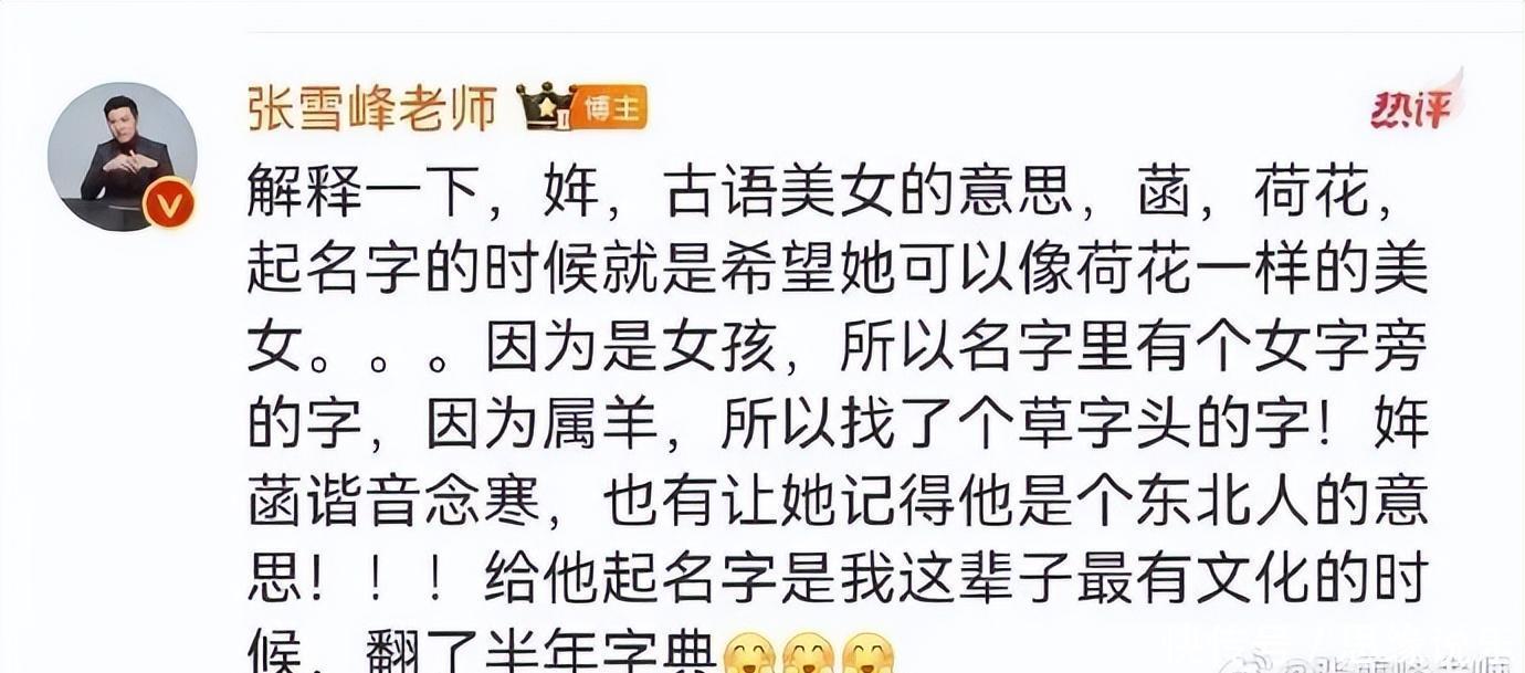 其实他早就在综艺里说过类似的话,聊起女儿就满脸温柔:“你想干啥就干啥,爸妈永远是你靠山。”有人说他飘了,可了解他过去的人都知道,这哪是飘啊,分明是在补偿。 张雪峰是黑龙江富裕县出来的糙汉子,跟员工聚餐还最爱铁锅炖。可对女儿,那叫一个细腻。为了起个好名字,翻了半年词典,自己还笑说这是最有文化的时候。有同事拍过视频,他在公司正严肃办公呢,一接女儿电话,语气立马软得不行,女儿提的要求全答应,要是没法兑现还说要加倍补偿,同事们都忍不住起哄。